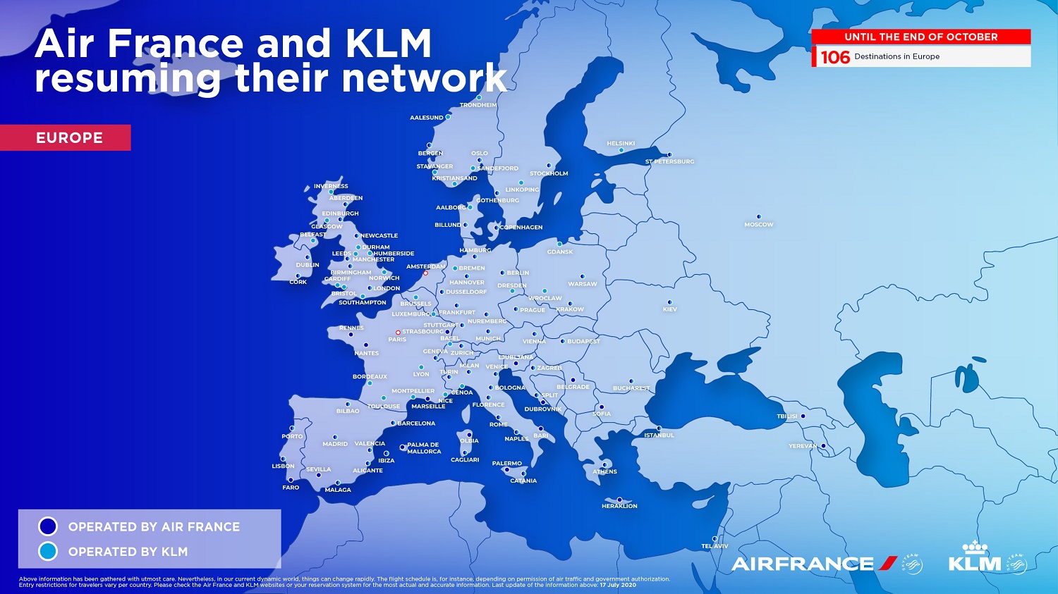 The European network of KLM Royal Dutch Airlines will grow in the coming months from 72 destinations in July to 91 destinations in August, September and October. The number of intercontinental destinations will increase from 51 in July, to 59 in August and 61 in September and October. As a result, KLM offers its customers the widest possible choice of destinations. Capacity in flights and seats, however, is still far below the level before COVID-19.